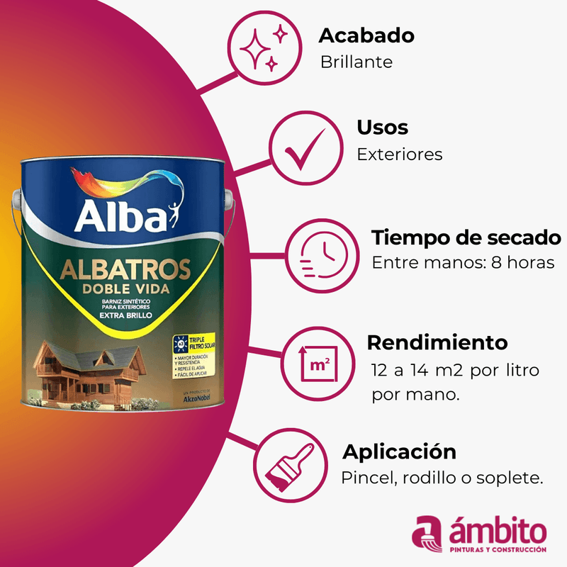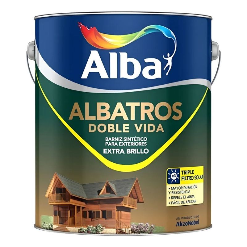 PinturaSuperficieTipos de PinturaMaderaMarcas de PinturaAlbaBarnizBarniz Sintético Marino Brillante Doble Vida Albatros 4 L