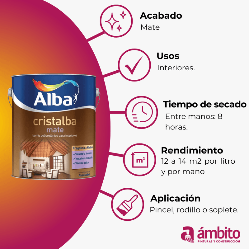 PinturaSuperficieTipos de PinturaMaderaMarcas de PinturaAlbaBarnizBarniz Sintético Mate Poliuretánico Cristalba 4 L