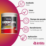 La Supercapa de Venier es una membrana poliuretánica impermeabilizante con un óptimo poder de adherencia. Excelente elasticidad y resistencia a los agentes atmosféricos. Se estira hasta 4 veces su tamaño sin dañarse y no se quiebra aun con temperaturas por debajo de los 15°c bajo cero.