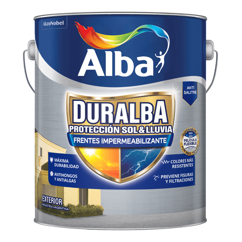 El Duralba Frentes y Muros es un látex elastomérico para exteriores. Impermeabilizante con una pelicula de alta resistencia al lavado y menor adherencia de la suciedad. Excelente poder cubritivo y gran elasticidad. A diferencia de otros productos, el Duralba Frentes y Muros es el ÚNICO producto que se puede aplicar en paredes nuevas sin esperar el tiempo de curado gracias a su formula anti salitre