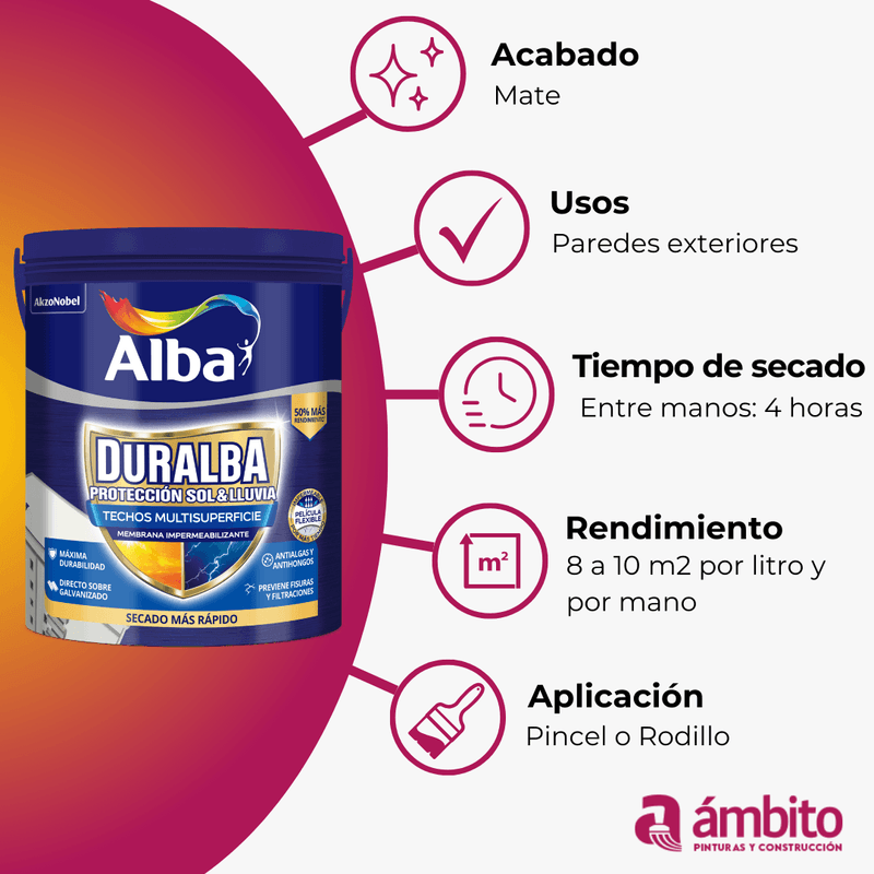 PinturaTipos de PinturaImpermeabilizantesMembrana Líquida Para Techos Blanca Sin Fibra Duralba 20 L