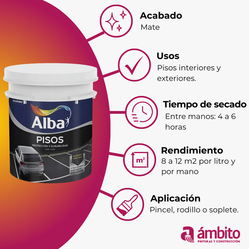PinturaSuperficieMarcas de PinturaPara PisoAlbaPintura para Pisos Latex Acrilico Gris Grafito 4 L Alba